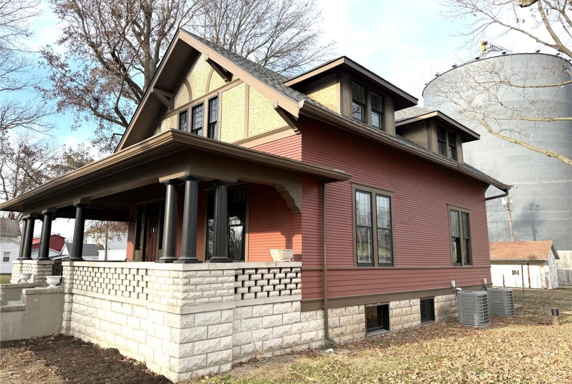 Discover timeless charm and modern updates in this stunning home in Addieville! The Bohbrink House features a large front entry foyer welcoming guests with original woodwork, stained glass window, open staircase and wood floors. The same quality finishes carry into the family room, formal dining room and office. Totally updated kitchen including new cabinets, counter tops, ceramic flooring and appliances. On the second floor you will find wide hallways, 3 generous sized bedrooms, a full bath and spacious laundry room. Some other updates include a new roof on the home in 2023, all plumbing, all electrical, all baths, insulation in walls and attic, dual HVAC and ductwork. There is a 3 season room and large wrap around front porch for outdoor entertaining.